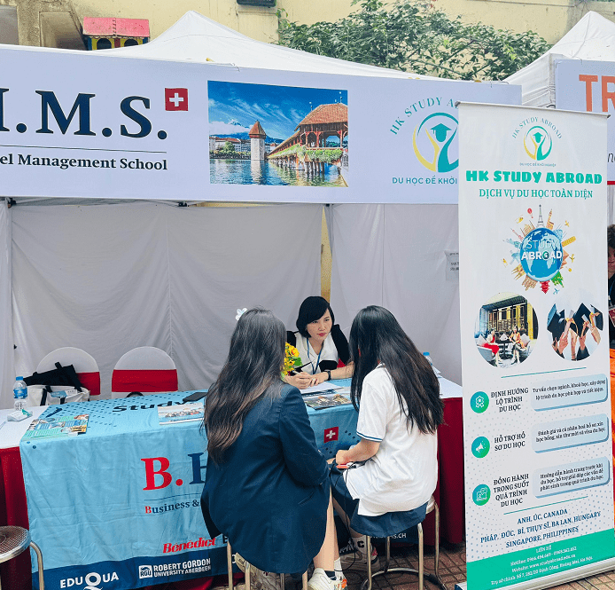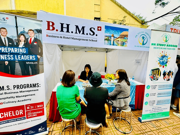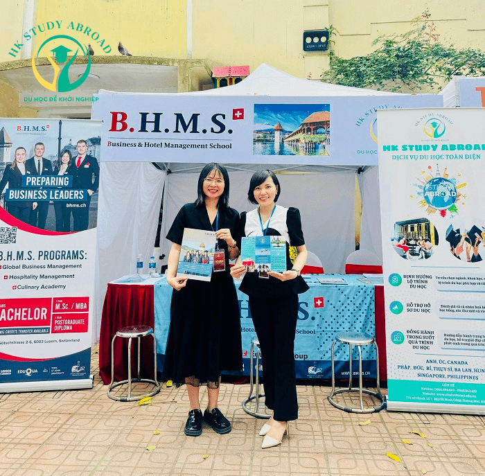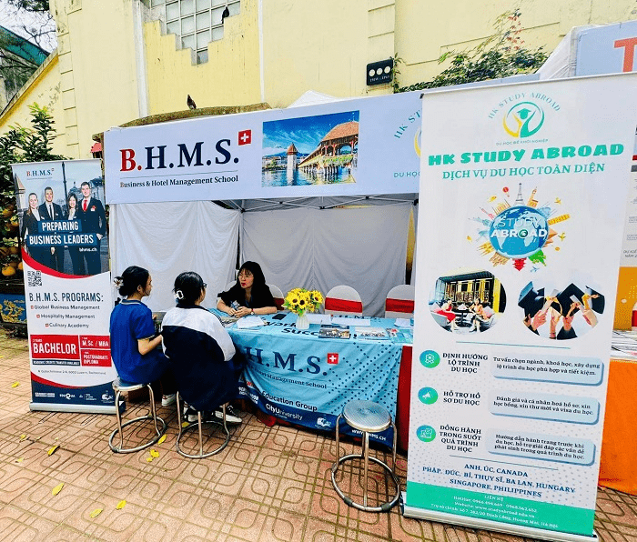 Với cương vị là đối tác tuyển sinh lâu năm của trường quản trị du lịch khách sạn BHMS Thụy Sĩ, đội ngũ chuyên viên tư vấn HK Study Abroad dành thời gian chia sẻ cho nhiều em học sinh từ lớp 10 tới lớp 12 về đất nước Thụy Sĩ- nơi được mệnh danh là cái nôi đào tạo của ngành quản trị du lịch khách sạn thế giới, về chương trình học, về mô hình đào tạo cực kỳ chuyên biệt giữa việc kết hợp tuyệt vời 6 tháng học với 6 tháng thực tập hưởng lương, về hệ thống bằng cấp, về cơ hội chuyển tiếp sang các nước thứ 3 làm việc …