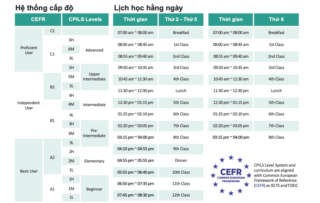 CPILS cam kết đưa ra chương trình học tốt nhất thông qua các lớp học linh hoạt trong chương trình học. Tất cả các khóa học đều có nhiều cấp độ khác nhau nhằm đảm bảo tất cả các sinh viên được tiếp thu kiến thức tốt nhất có thể.