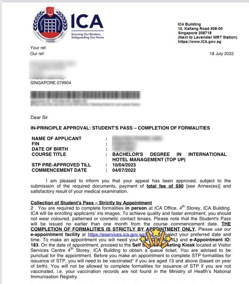Khi Visa Student Pass của bạn được thông qua, sinh viên sẽ nhận được IPA Letter để in ra dùng làm thủ tục nhập cảnh vào Singapore.