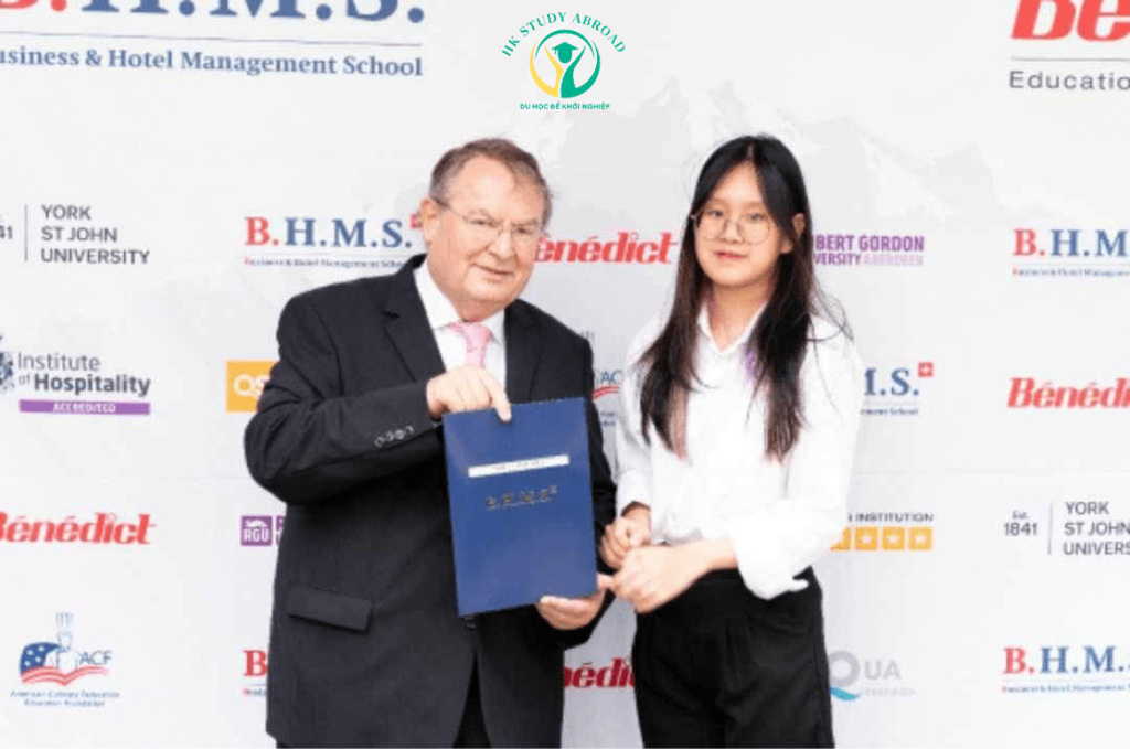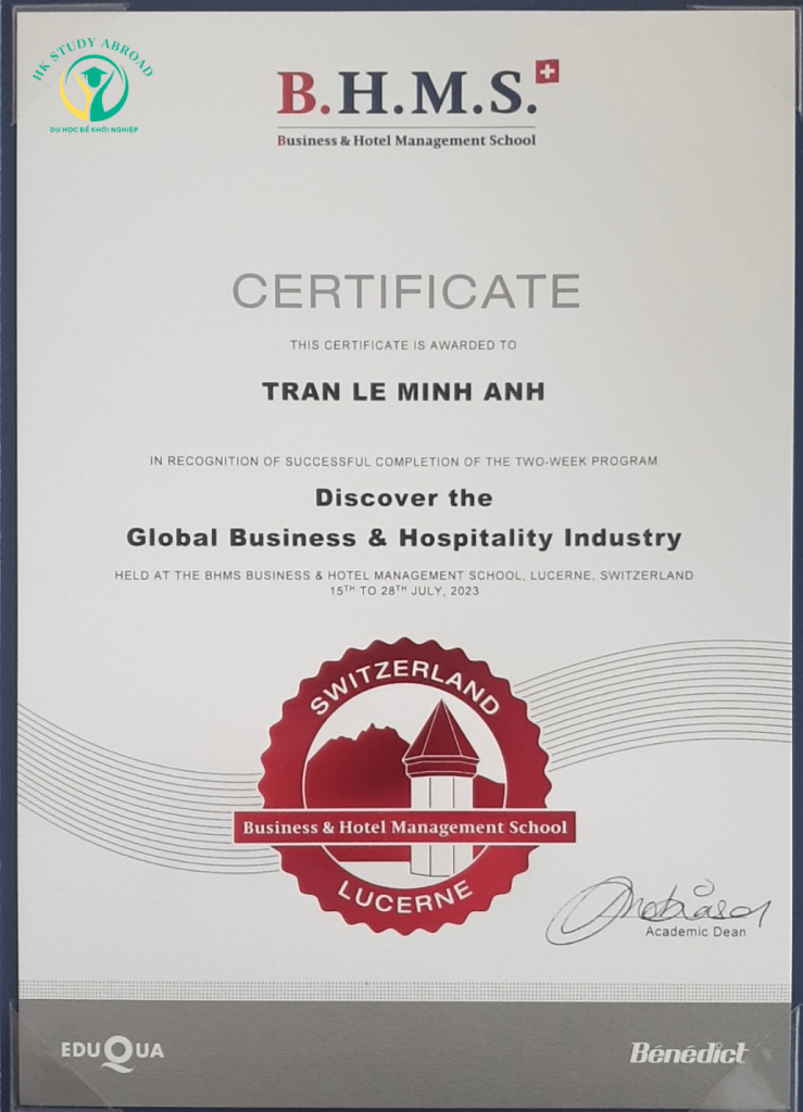 BHMS (Business & Hotel Management School) được thành lập năm 1928, là thành viên của tập đoàn Benedict Education Group, một trong những tổ chức giáo dục lâu đời và uy tín nhất ở Thụy Sĩ. Trường toạ lạc tại trung tâm thành phố Lucerne, một thành phố du lịch nổi tiếng chỉ cách trung tâm tài chính Zurich 50 phút đi tàu và cũng là điểm thu hút khách du lịch quốc tế nhất tại Thụy Sĩ. BHMS chuyên đào tạo về lĩnh vực du lịch khách sạn, ẩm thực với điểm nổi bật là sự đan xen hài hoà giữa giảng dạy lý thuyết và đào tạo thực tiễn. Mỗi năm học tại trường trường, sinh viên sẽ học 6 tháng lý thuyết và thực tập 6 tháng tại các nhà hàng, khách sạn tại Thuỵ Sĩ với mức lương tối thiểu nhận được là 2.303 CHF/tháng. Nhờ đó, sau khi tốt nghiệp, sinh viên đã tích luỹ được 1-1.5 năm kinh nghiệm làm việc thực tế, điều này có ý nghĩa rất lớn trong quá trình tìm việc làm và phát triển sự nghiệp cá nhân sau khi tốt nghiệp.