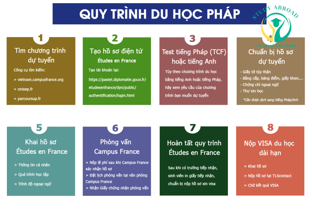 Để bắt đầu kế hoạch du học Pháp, bạn cần chuẩn bị cho mình một tâm thế vững vàng, một hồ sơ học tập chắc chắn, một tài chính đủ cho bạn học tập và sinh sống tại Pháp cũng như các kỹ năng cần thiết khi bạn xa gia đình. Hãy bắt đầu từ: