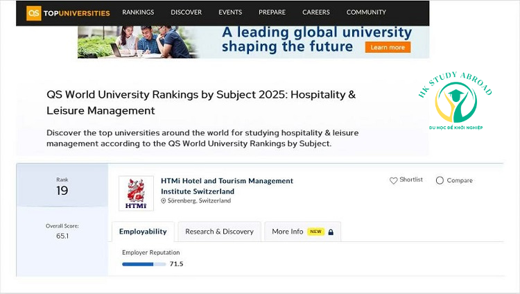 Năm nay, Học viện quản lý du lịch khách sạn HTMi Thụy Sĩ – Hotel and Tourism Management Institute Switzerland chính thức vươn lên vị trí thứ 19 Thế giới trong lĩnh vực Hospitality & Leisure Management, theo bảng xếp hạng danh giá QS World University Rankings by Subject 2025.