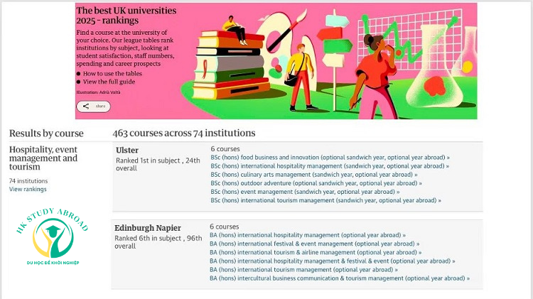 Chương trình cử nhân liên kết với trường Ulster University, ngôi trường top 1 tại Vương quốc Anh về Hospitality, Events & Tourism (The Guardian 2025).