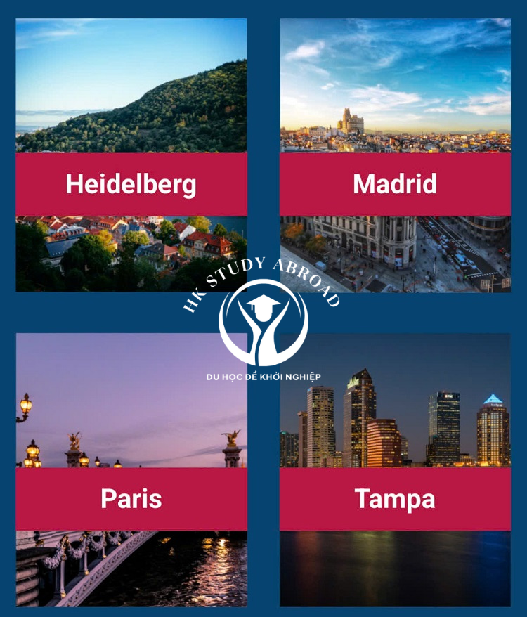 – Cơ sở học tập: Madrid, Paris, Heidelberg, Tampa (tùy ngành)